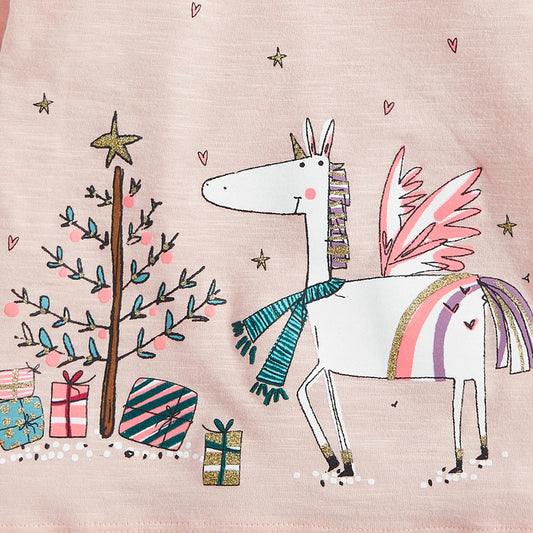 Langärmliges Einhorn-T-Shirt aus Baumwolle für Mädchen