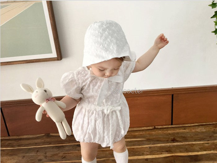 Body en dentelle pour bébé fille avec chapeau assorti et et petit motif