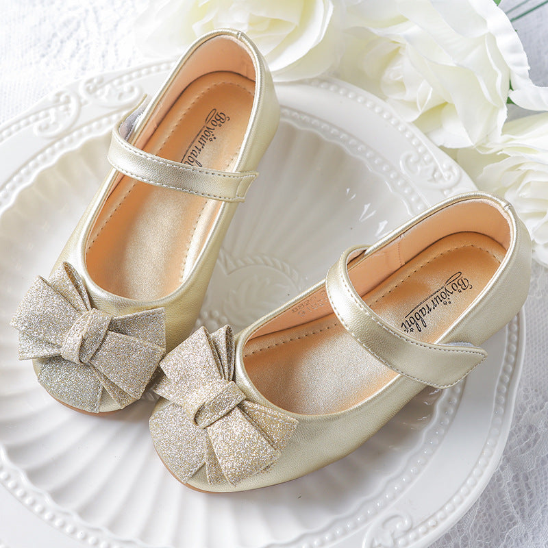 Chaussures en simili cuir à papillon brillant et semelle plate et souple pour filles