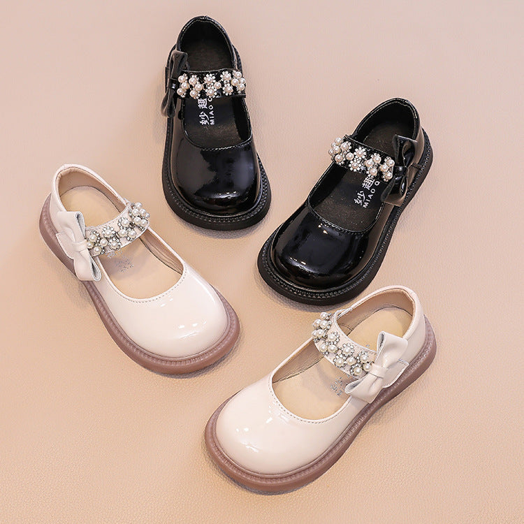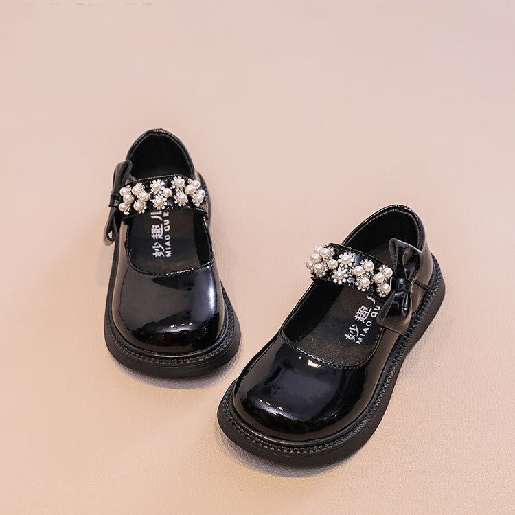 Chaussures en simili cuir brillant à bouche peu profonde et perles pour filles