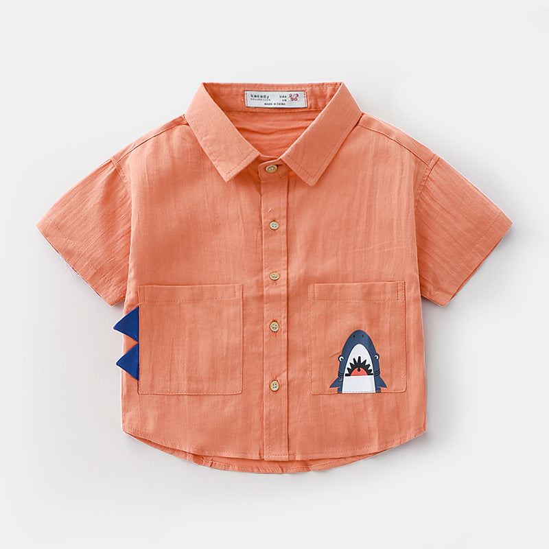 Chemise pour petit garçon avec imprimé requin et ailerons côté