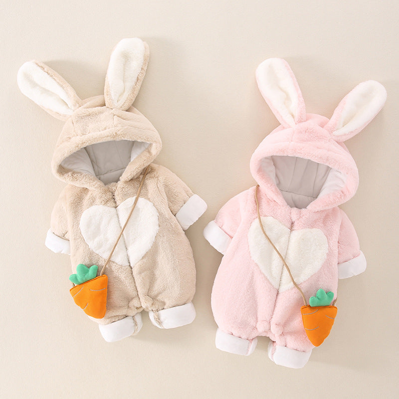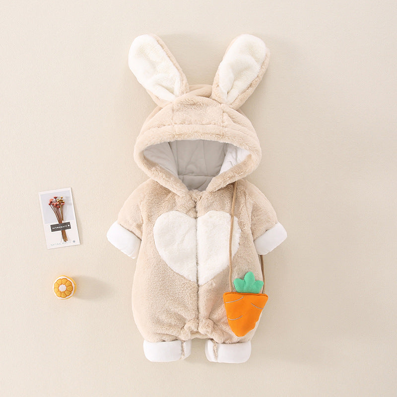 Combinaison bébé lapin fourrure épaisse capuche à grandes oreilles