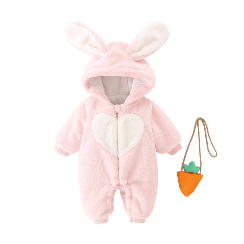 Quoi de plus mignon qu'une petite combinaison pyjama en forme de lapin en fourrure pour bébé, complétée de sa petite capuche à grandes oreilles.