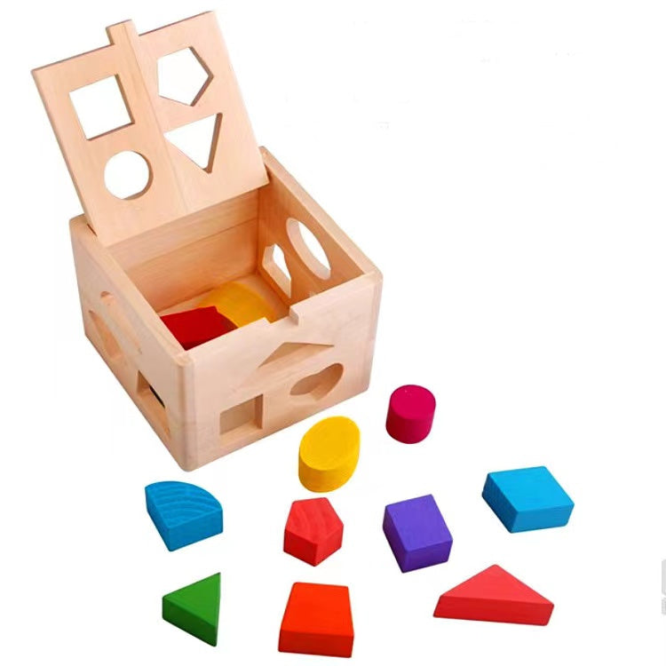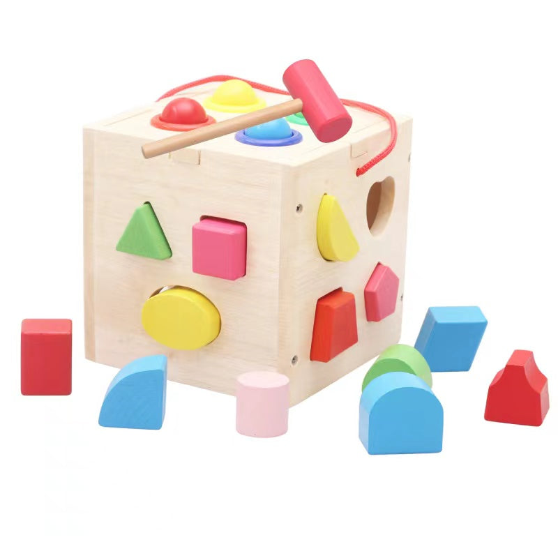 Jeu éducatif cube à trous pour pièces à encastrer.
