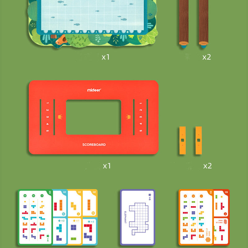 Jeu pédagogique à jouer en famille, axé sur la logique, la construction et la géometrie dans l'espace.