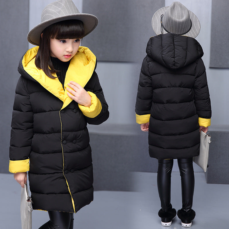 Doudoune longue réversible pour fille avec double boutonnage contraste couleur