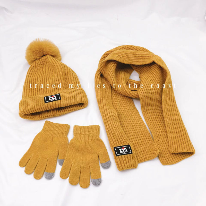 Petits ensembles aux couleurs unies pastel pour tenir chaud aux enfants lors de leurs sorties. Matière douce et chaude. Trois éléments dans cet ensemble: Bonnet, écharpe et gants.
