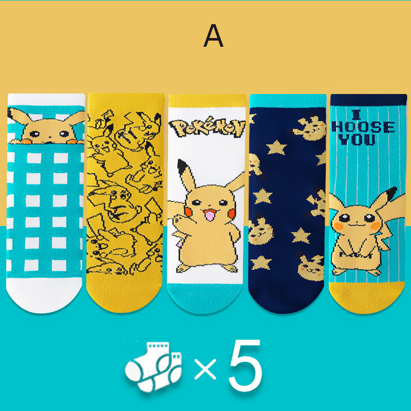 Ensemble de cinq paires de chaussettes Pikachu pour les enfants