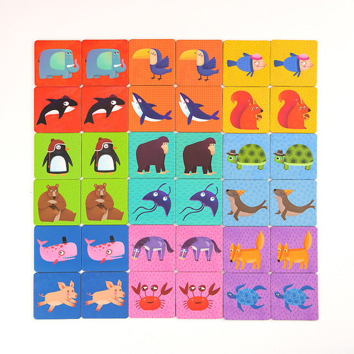 Amusez vos enfants pendant des heures et entrainez-les à utiliser leur mémoire grâce à ce jeu de mémo exclusif sur le thème de la nature et des animaux.