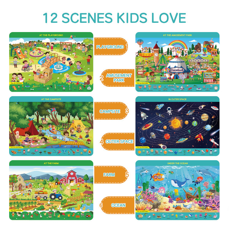 Offrez à votre enfant une manière amusante et interactive d'apprendre l'anglais avec ce livre-jouet réutilisable "Cherche et Trouve". Conçu pour les enfants de 4 à 6 ans ou pour tout débutant en anglais, ce jeu éducatif stimule l’apprentissage du vocabulaire à travers des activités engageantes. Fabriqué à partir de matériaux écologiques et imprimé avec de l’encre de soja respectueuse de l’environnement, ce kit comprend :