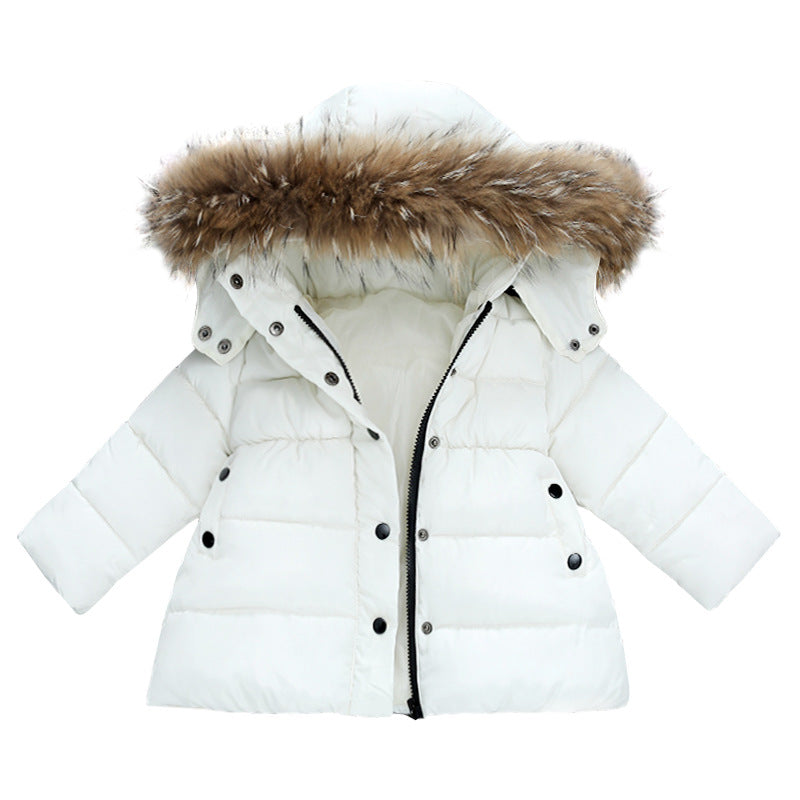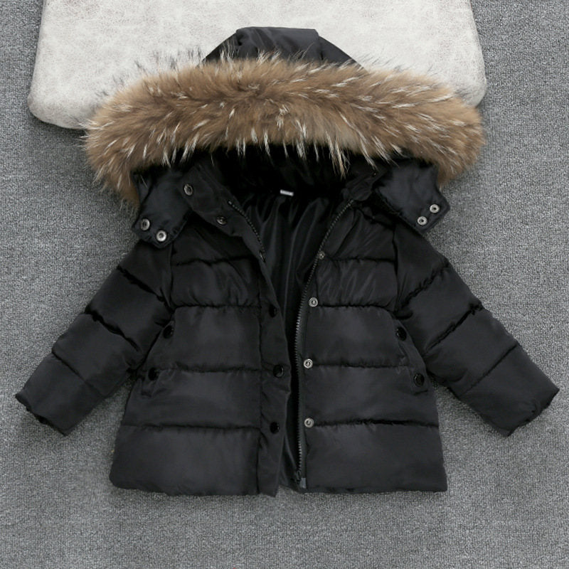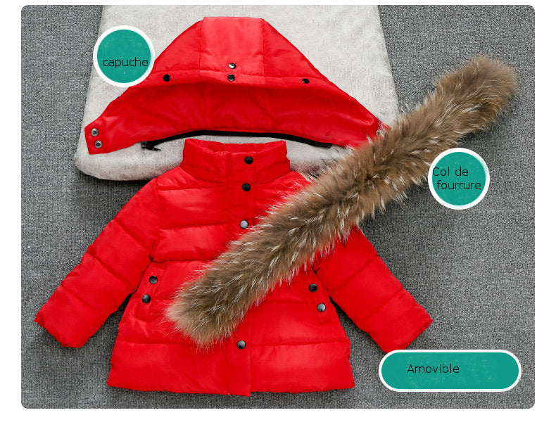 Manteau long enfant avec capuche à fourrure amovible