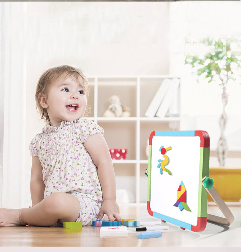 Tableau à dessin en ardoise pour enfants, pour écrire et dessiner en toute liberté! Il est également magnétique, ce qui permettra à vos enfants de créer des formes ou faire des puzzles avec les aimants inclus.