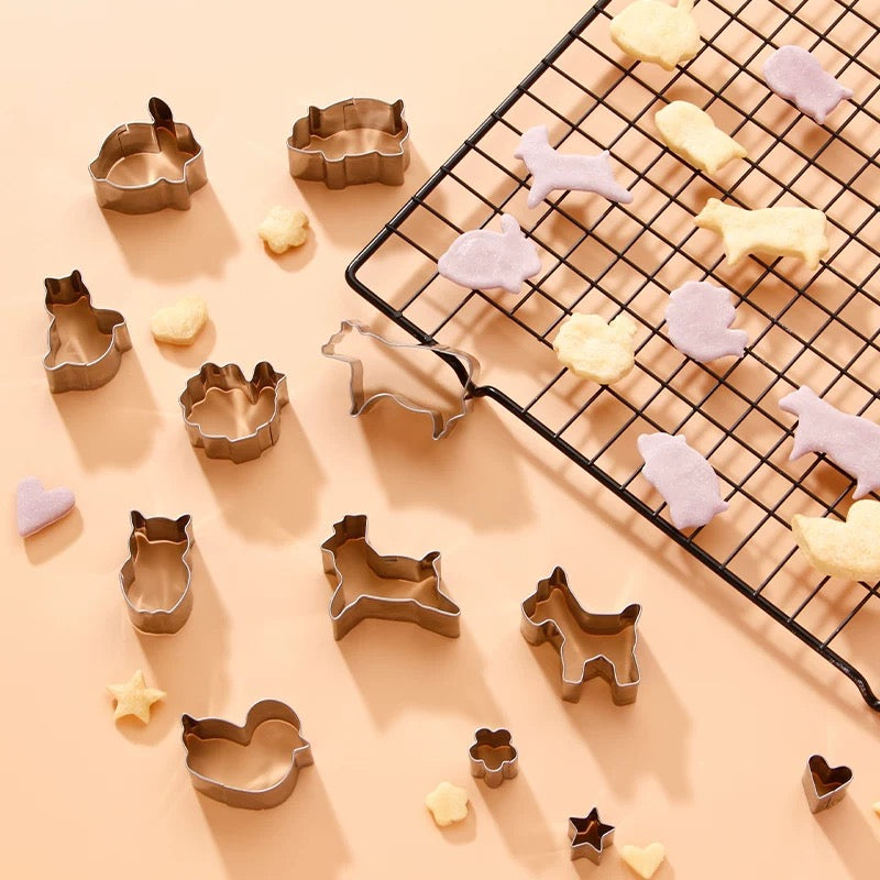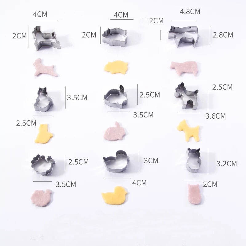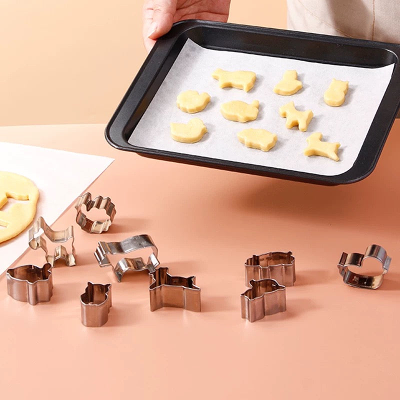 Moules à biscuits en inox pour enfants – Set de 9 animaux + 3 décorations