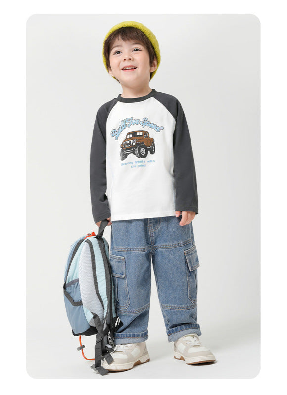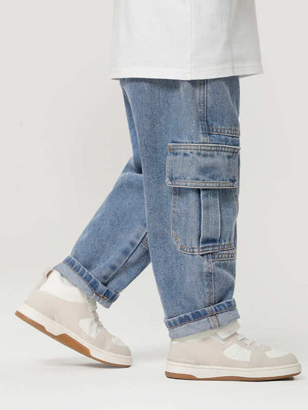 Pantalon Cargo en Jean pour Garçon - Coupe Loose, Confortable et Pratique, Taille Élastique, 100% Coton