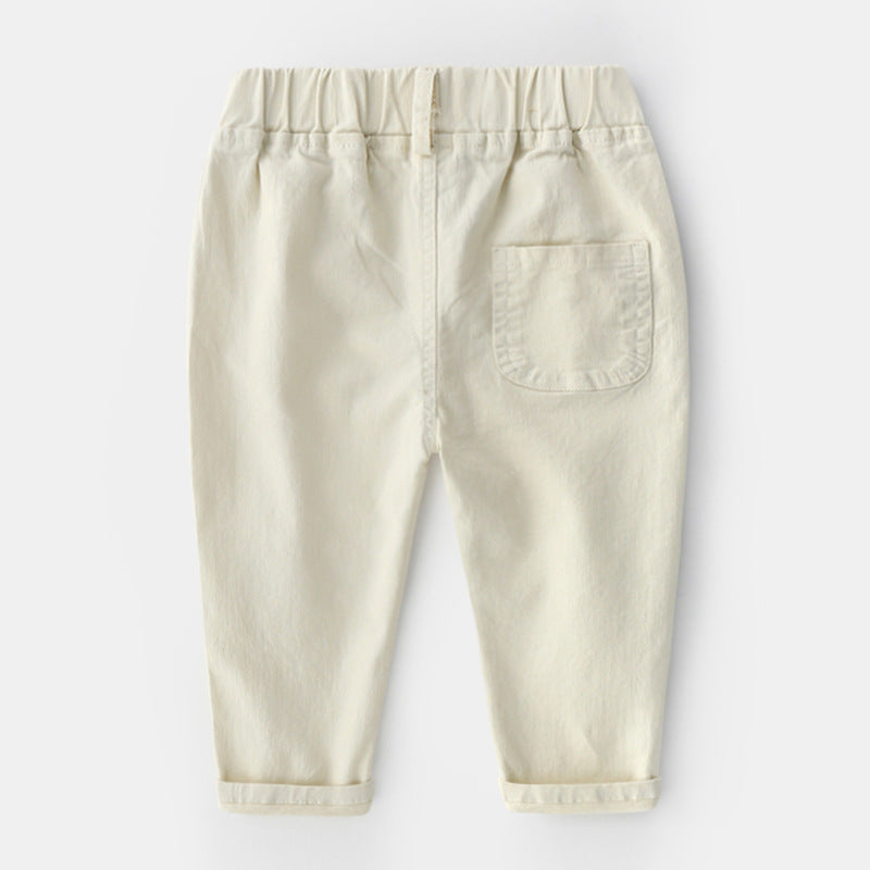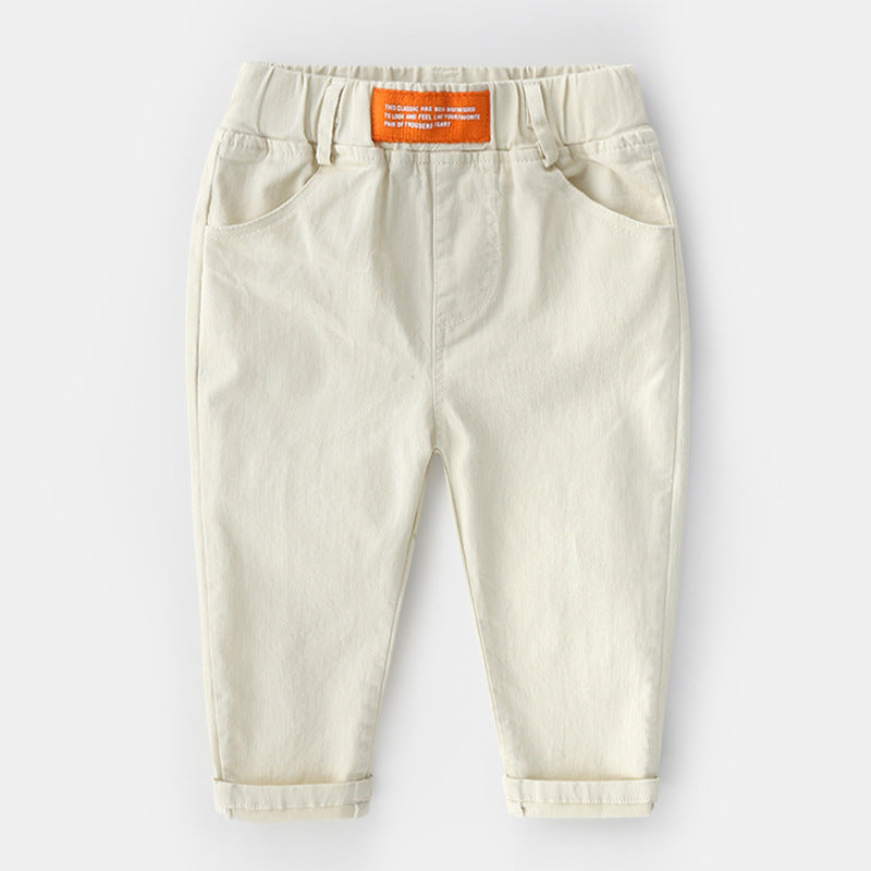 Ajoutez une touche classique et intemporèlle avec ce superbe pantalon chino pour garçon qui possède une étiquette orange sur l'avant et une taille élastique!