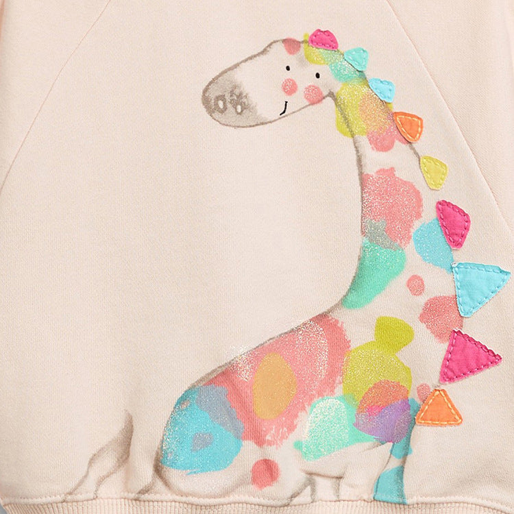 Ajoutez une touche fantaisie et magique à vos petits cette saison avec ce magnifique pullover pour fille à col rond, avec un imprimé de giraffe sur l’avant en multicouleur.