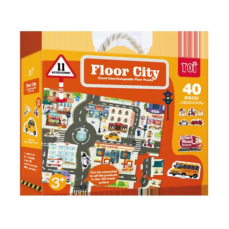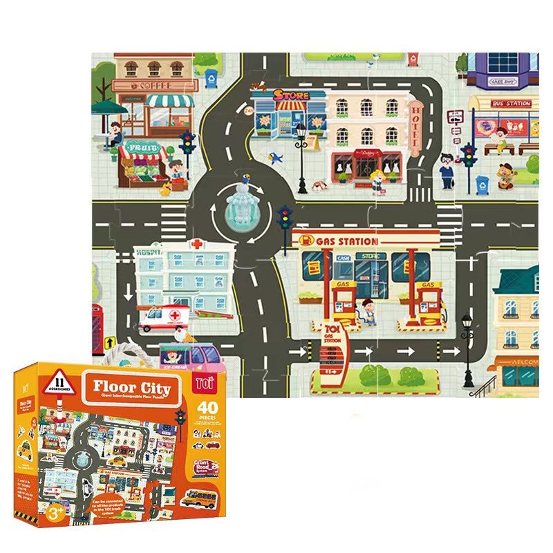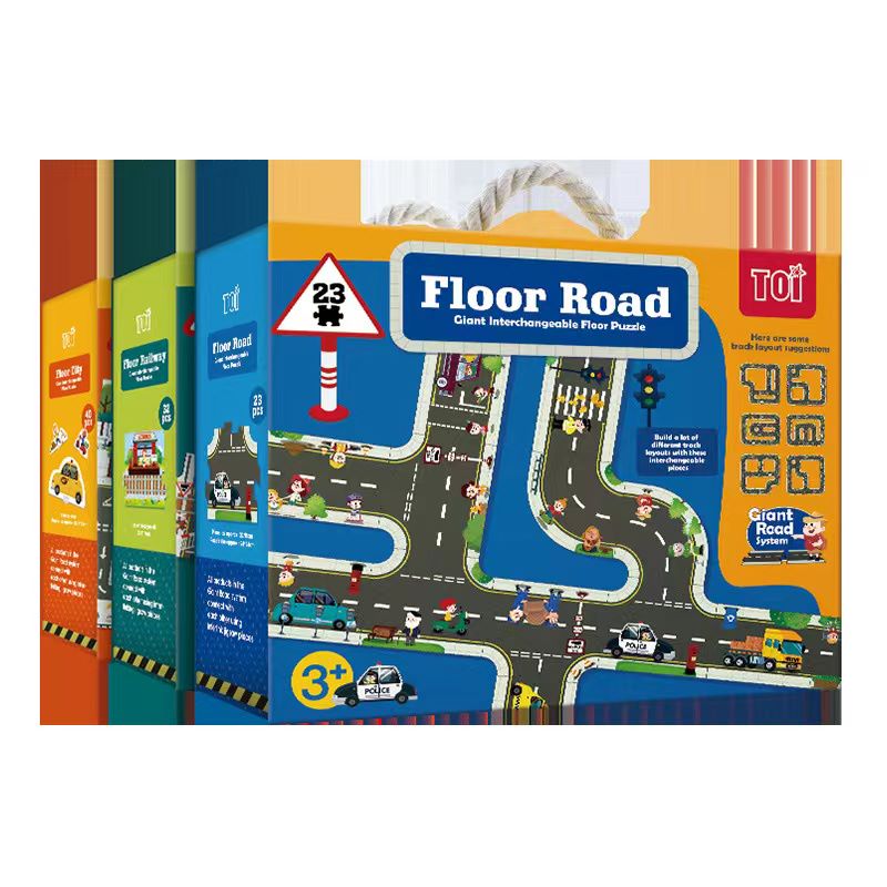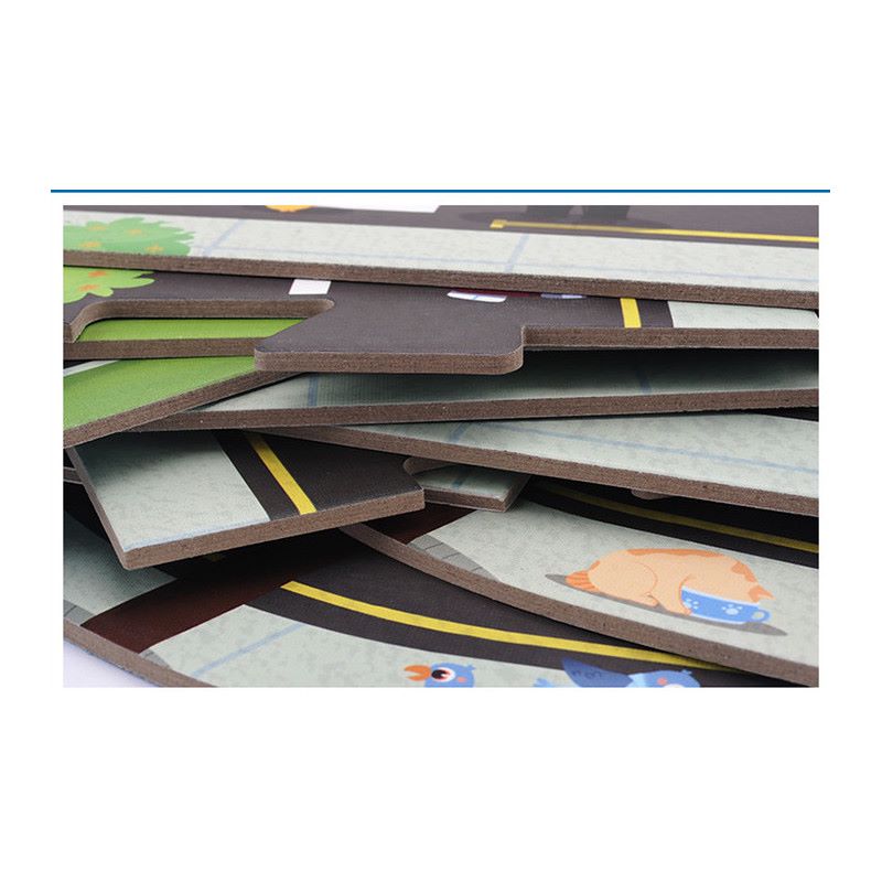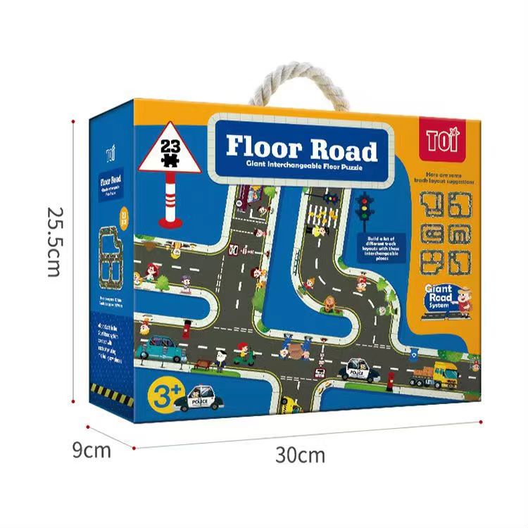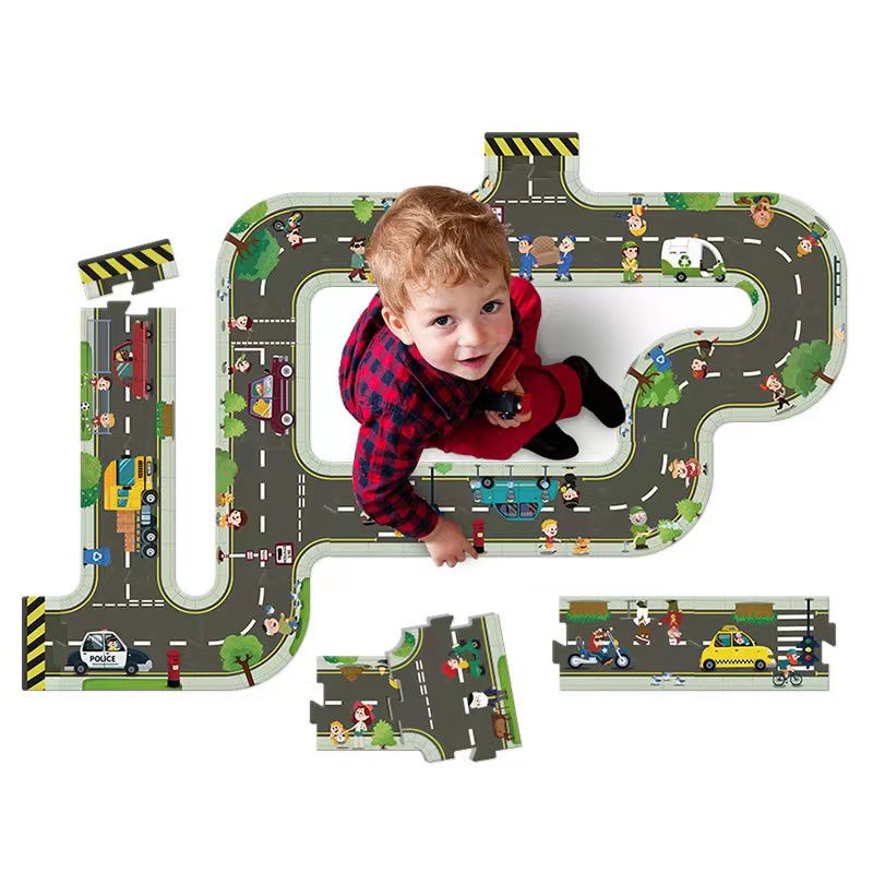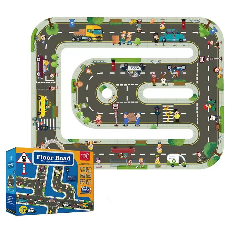 Circuit de voitures en carton rigide, format puzzle geant. 23 pièces, possibilité de nombreuses combinaisons.