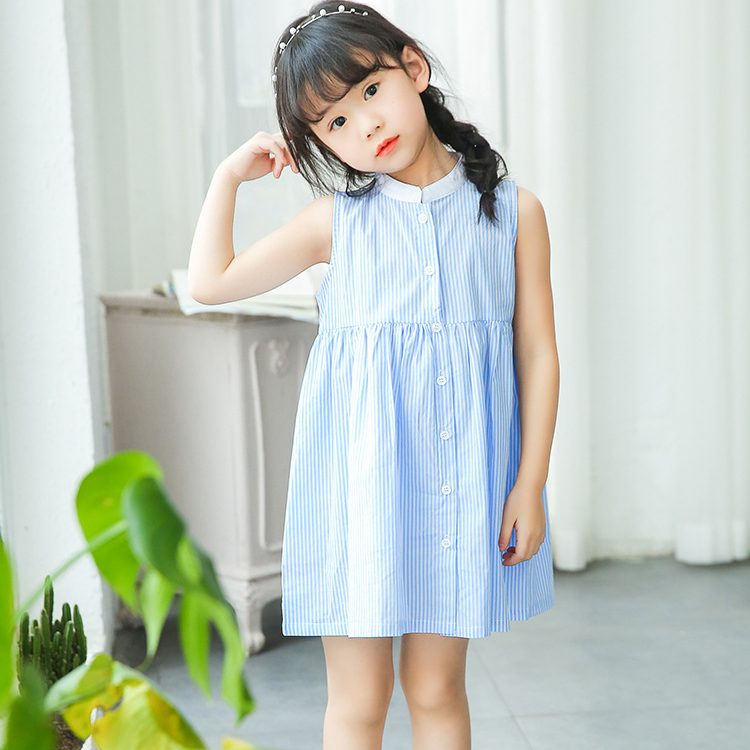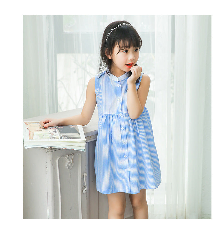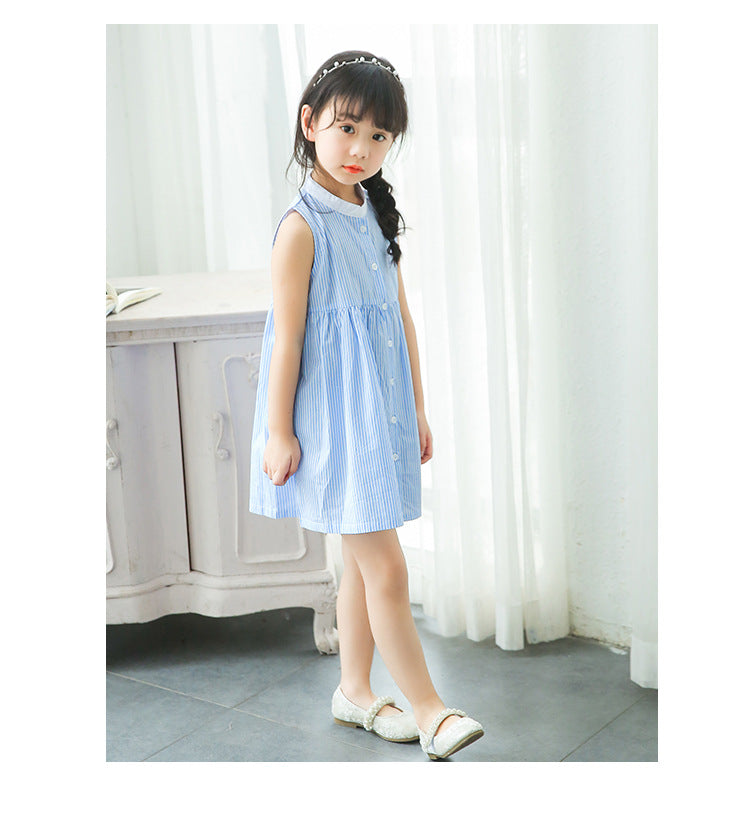 Robe à rayures sans manches avec col montant bleu clair pour fille
