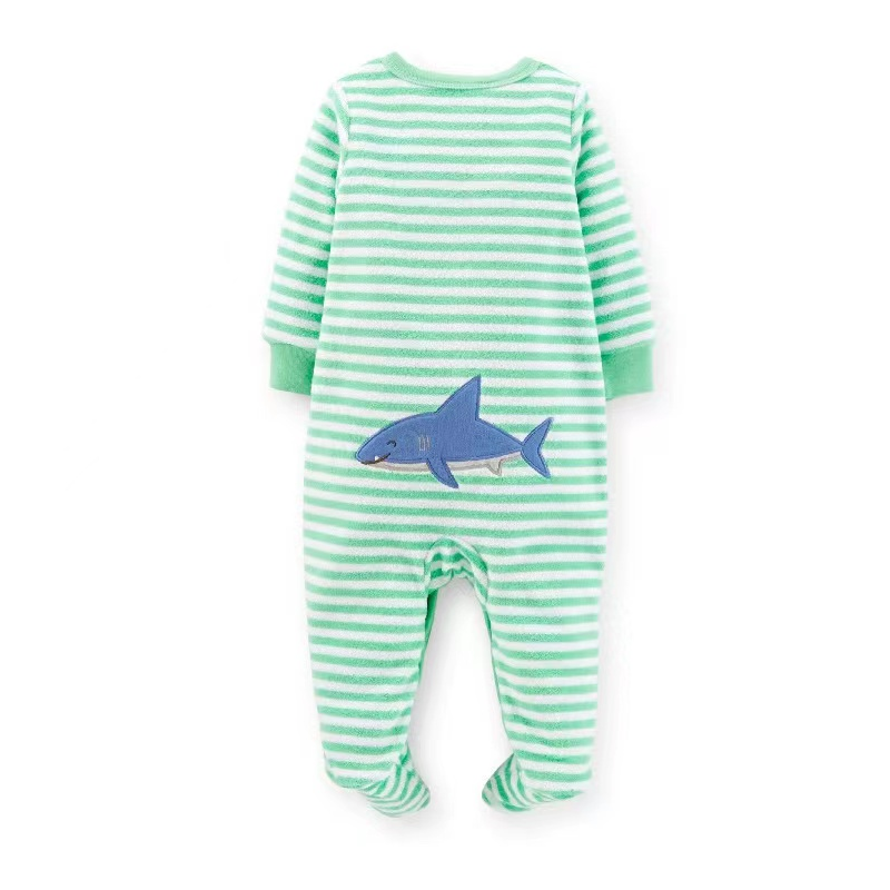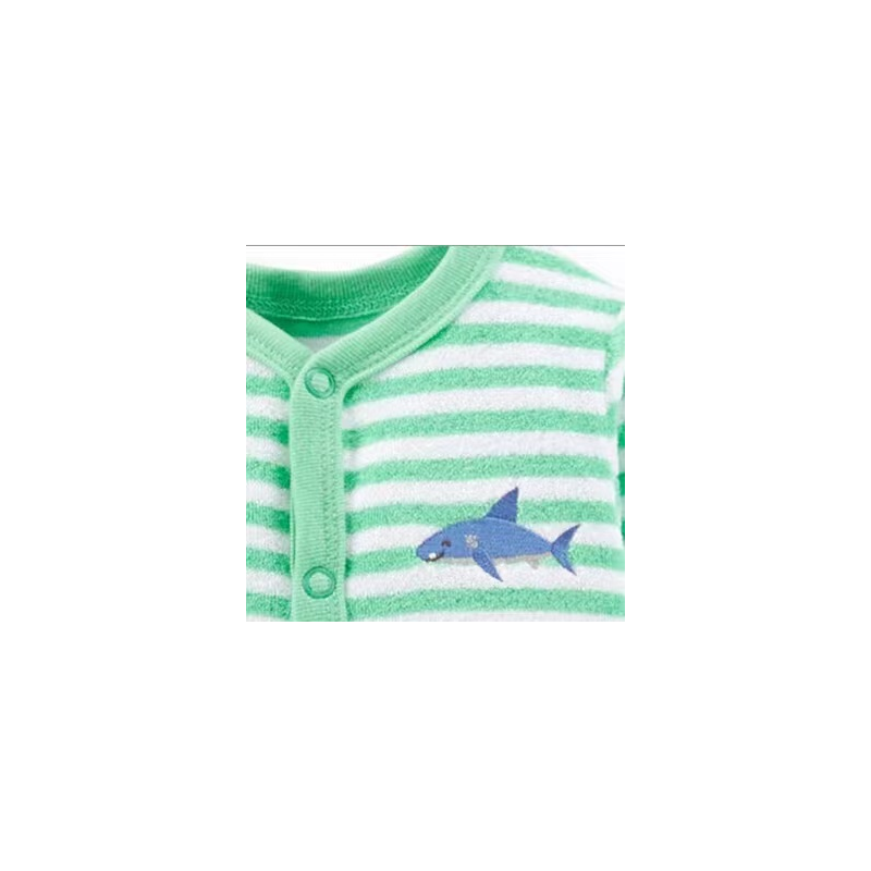 Ce surpyjama à manches longues, Jambes fermées et fermeture à pressions est idéal pour permettre au bébé d'être libre de ses mouvements pendant son sommeil sans jamais avoir froid.Les rayures, le requin et les couleurs lui donnent un aspect tendre et rigolo.