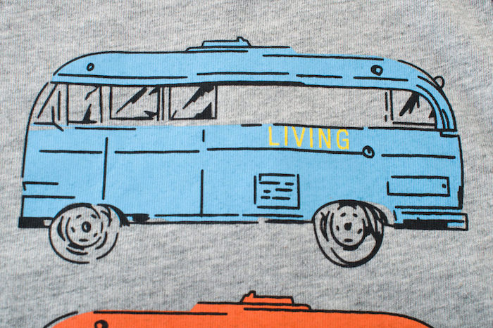 Ce T-shirt est en tissu 100% coton, et est doux et confortable. Les modèles de bus attirent souvent l'attention des enfants qui l’adorent. Col rond.