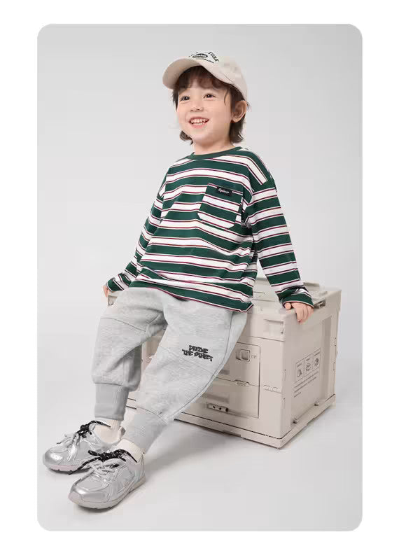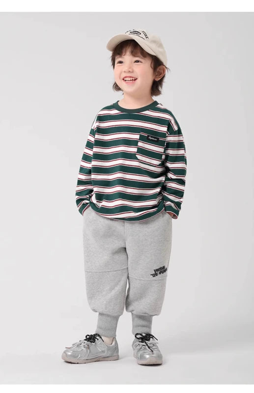 T-shirt à Manches Longues Rayé pour Garçon – Vert Classique, Col Rond