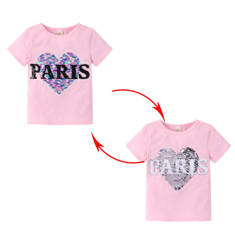 T-shirt à sequins réversibles pour fille avec lettres Paris
