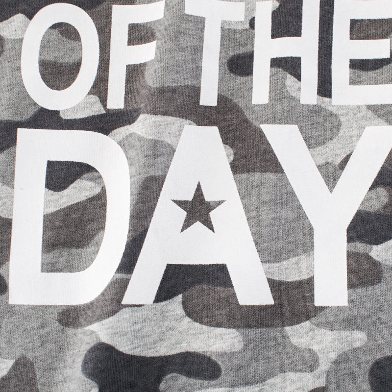 Ce T-shirt personnalisé est en coton avec des imprimés camouflage cool. Idéal pour les petits garçons. Col rond. Vous pouvez le porter avec un short.