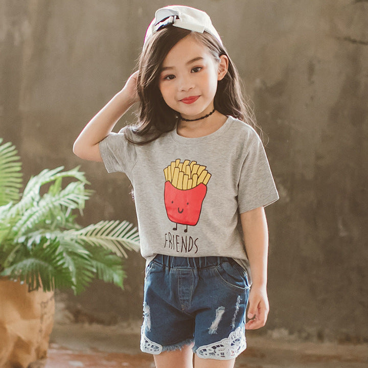 Ajoutez une touche mignonne et bon enfant à la tenue de vos petits cette saison avec ce superbe t-shirt à manches courtes pour fille imprimé avec la mention Best ou Friends, et avec un goblet ou une barquette de frites, en fonction du choix de couleur.