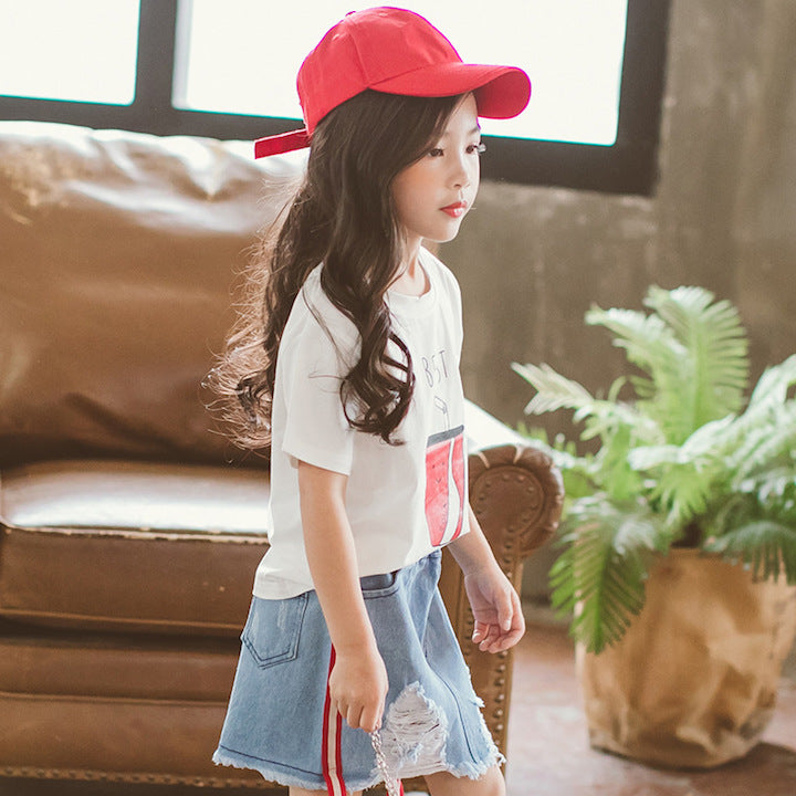 T-shirt manches courtes dessin animé imprimé col rond pour fille