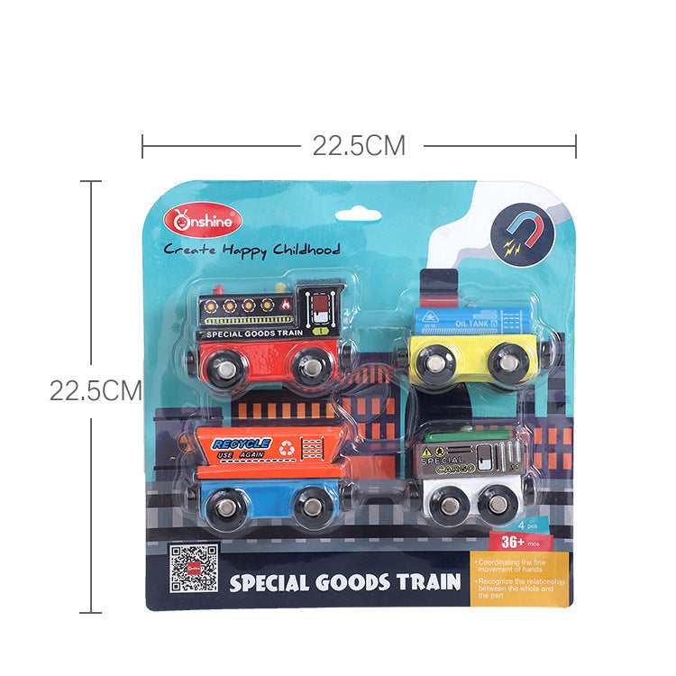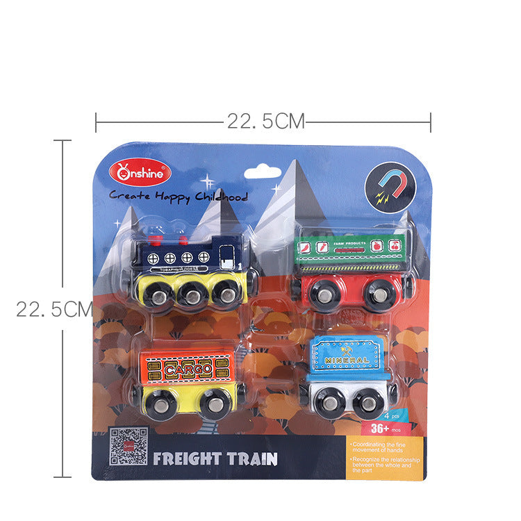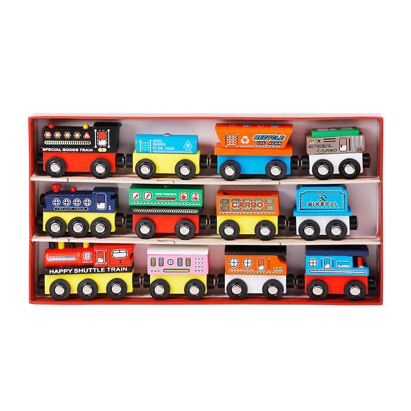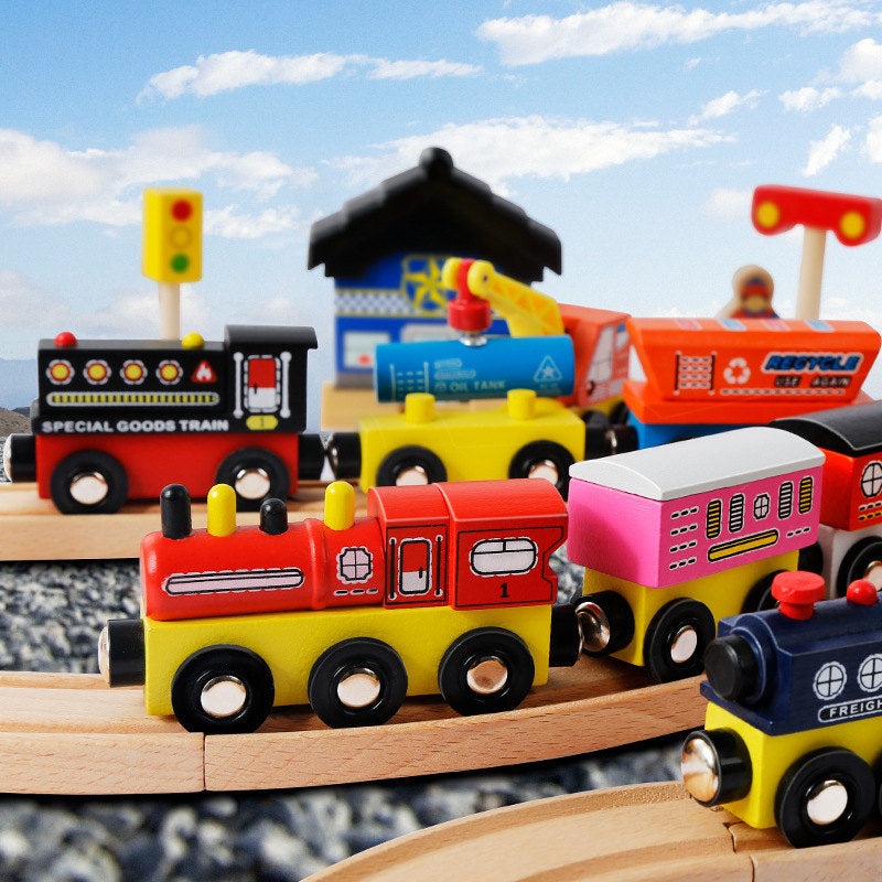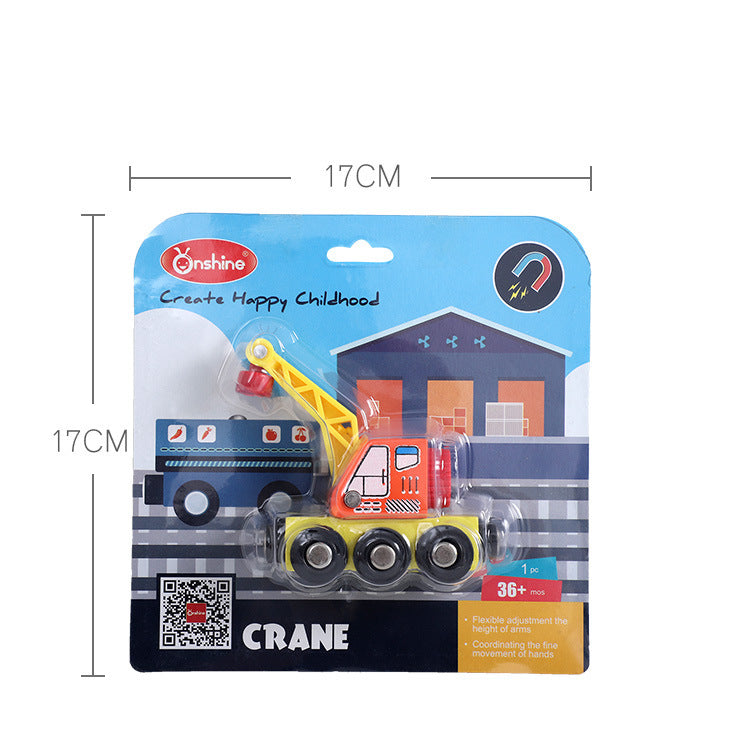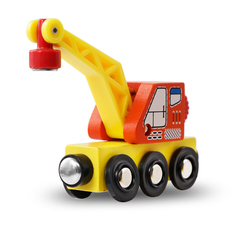 Train en bois aimanté avec grue locomotive wagon pour enfant